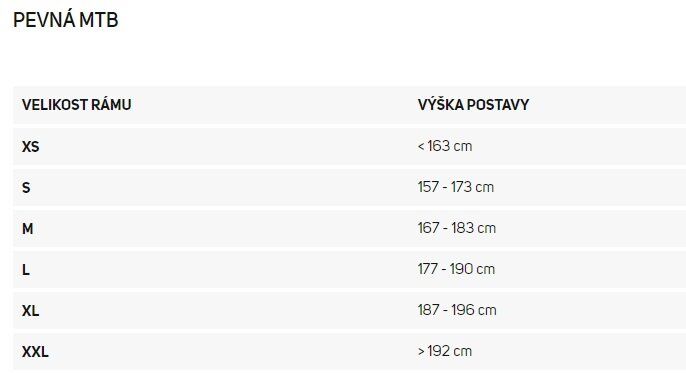 Pokud je vaše výška postavy na rozmezí dvou velikostí rámů, platí následující pravidlo: