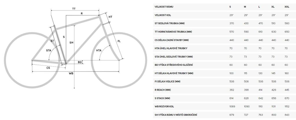 • Pokud používáte odpruženou sedlovku, měli byste z velikosti rámu odečítat přibližně 3cm