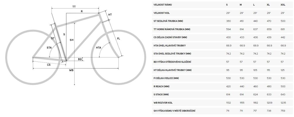 • Pokud používáte odpruženou sedlovku, měli byste z velikosti rámu odečítat přibližně 3cm