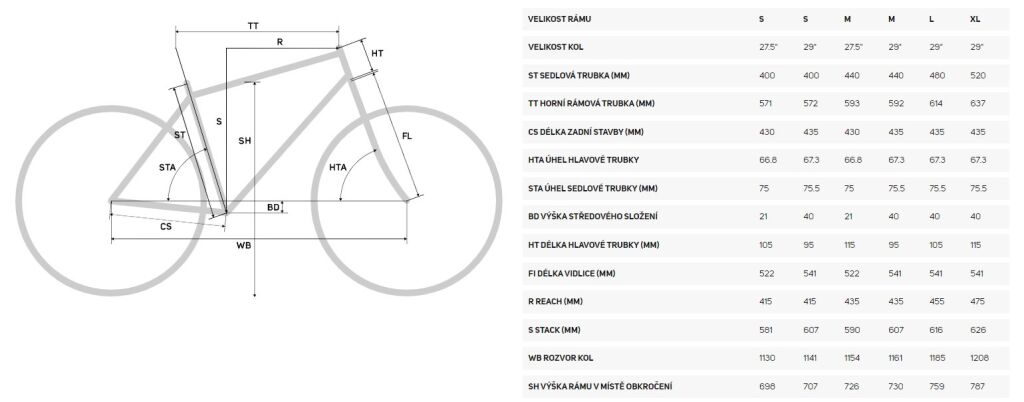 • Pokud používáte odpruženou sedlovku, měli byste z velikosti rámu odečítat přibližně 3cm