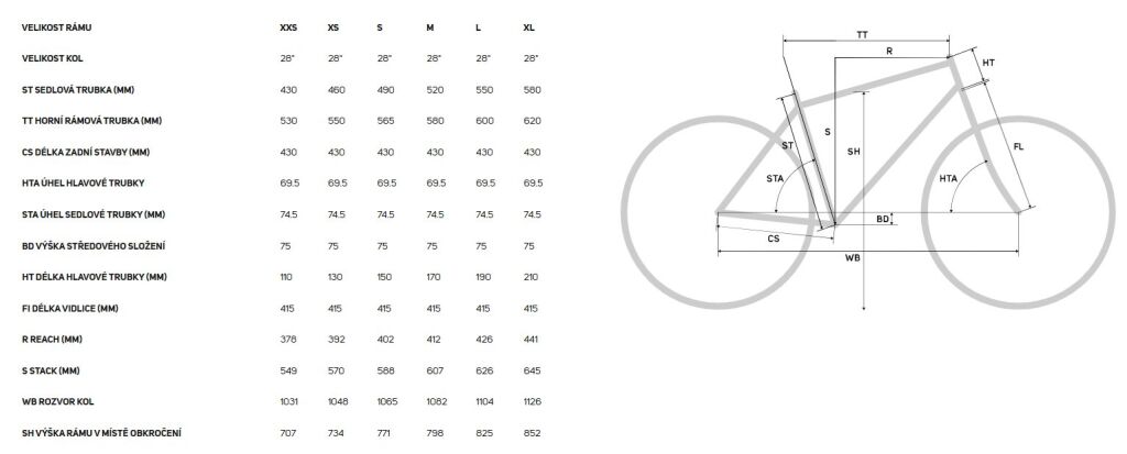Výšku rámu v místě obkročení najdete v tabulce s geometrií rámu na stránce produktu. Pro zobrazení informací klikněte na záložku "geometrie".